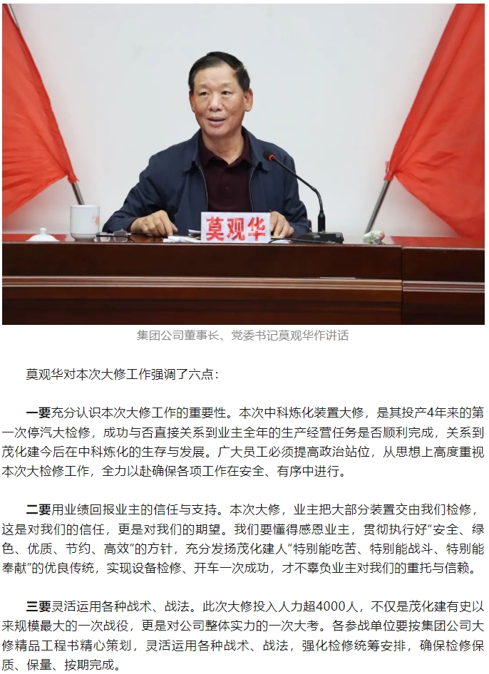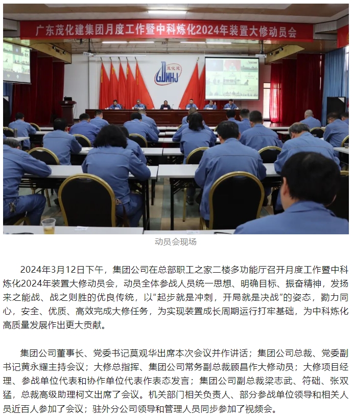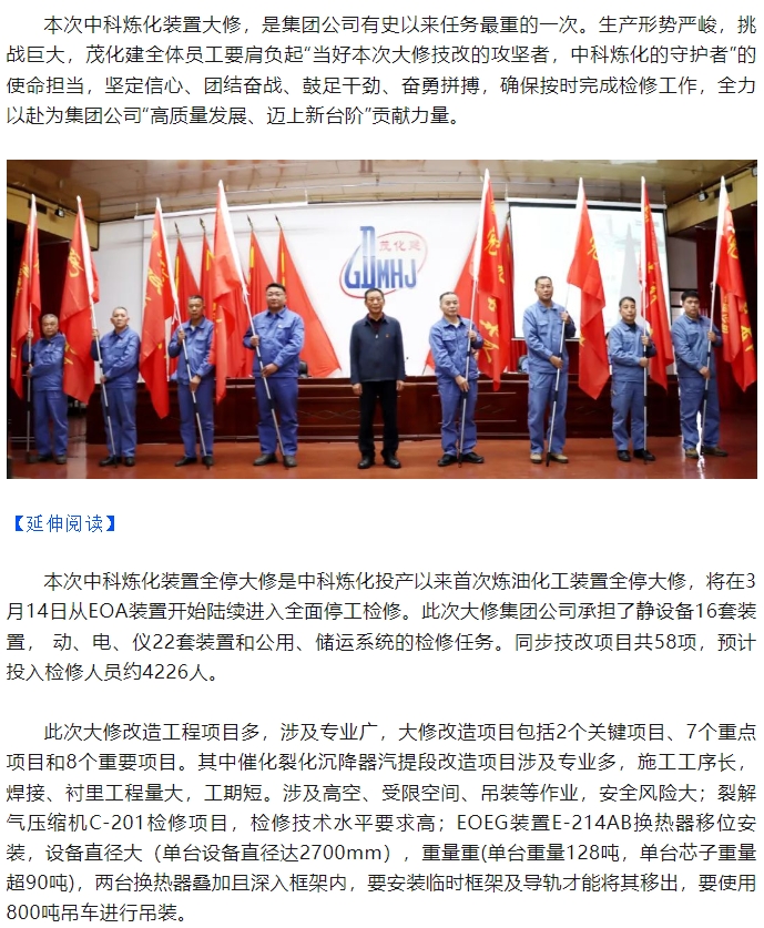 勠力同心擂(lei)響戰鼓 千軍(jun)萬馬出征大(da)修——集團公司(si)🏃♀️2024年中科煉化(hua)裝置大修動(dòng)
