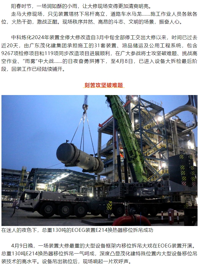 火熱幹勁 激(jī)戰正酣——走馬(ma)2024年中科煉化(huà)裝置大修改(gǎi)造大會戰現(xian)場(二)