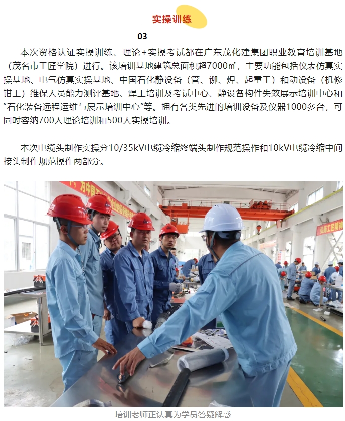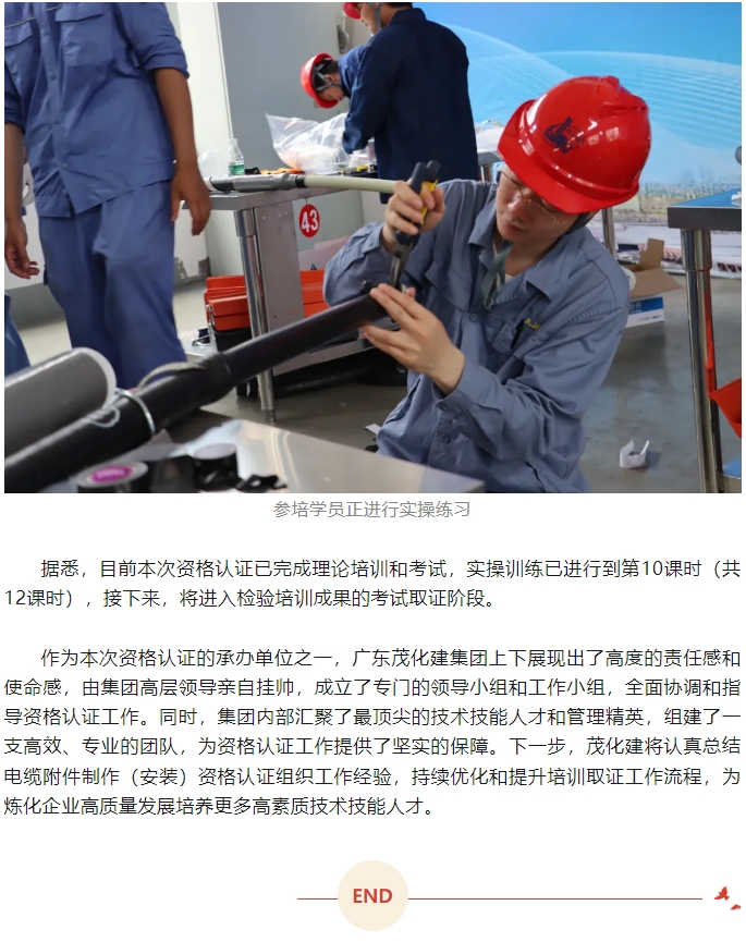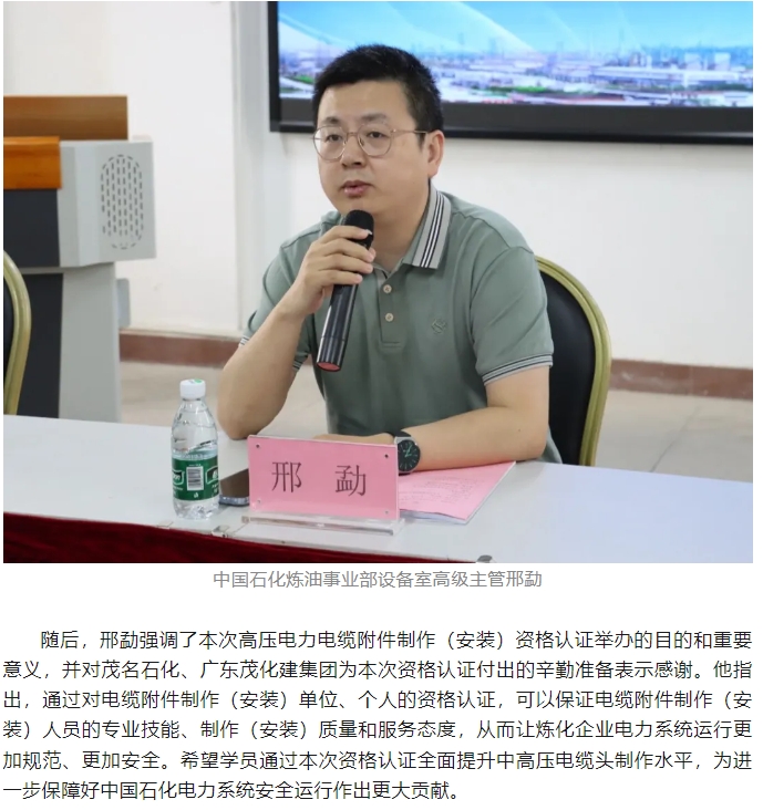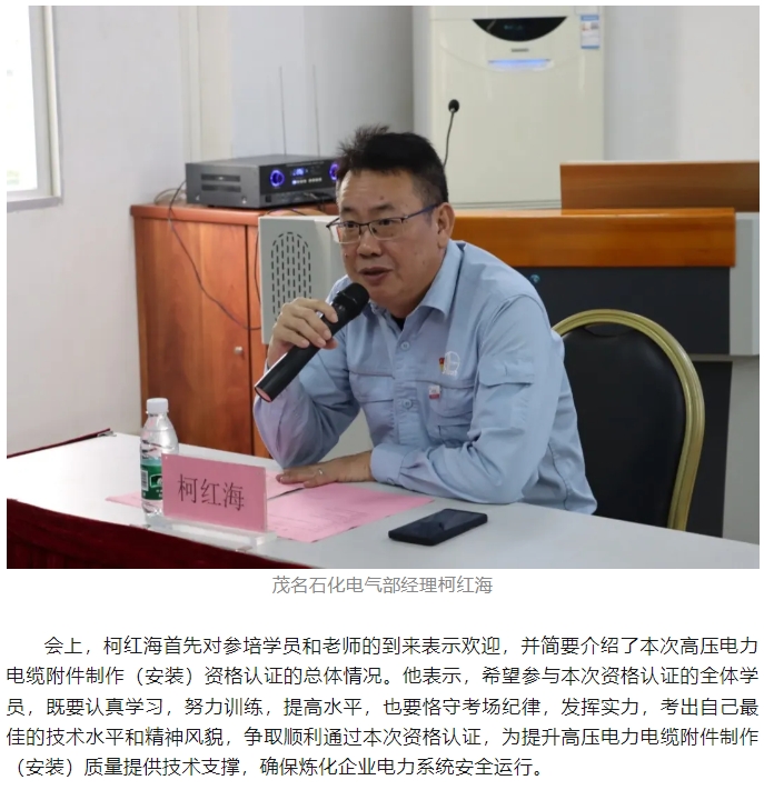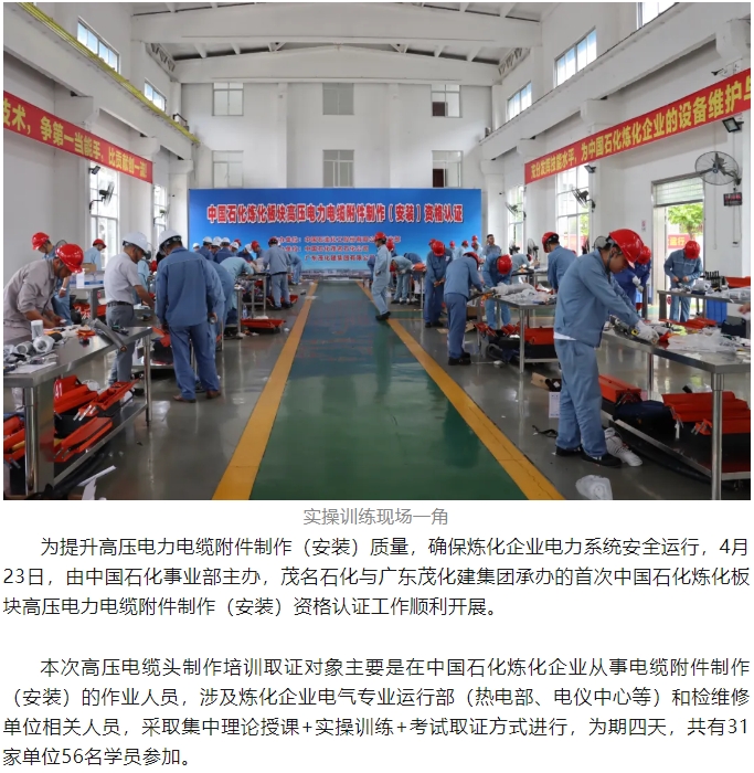 首次中國石(shí)化煉化闆塊高(gao)壓電力電纜附(fù)件制作(安裝)資(zi)格認證在茂名(ming)順利舉行