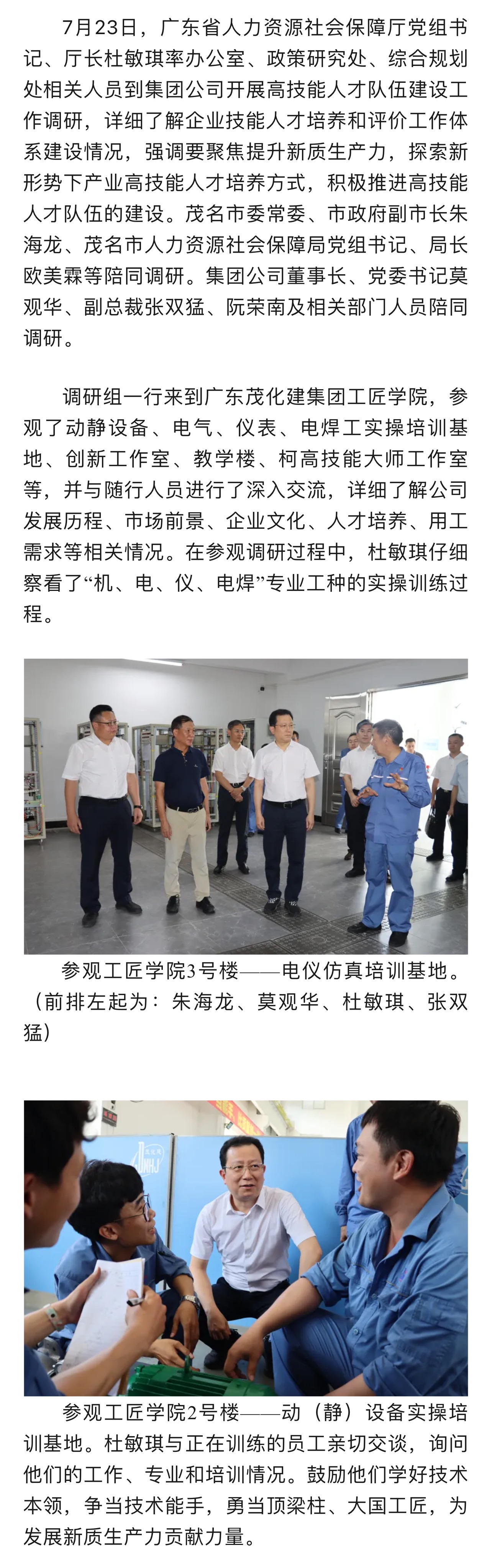 廣東(dōng)省人社(she)廳到集(jí)團公司(sī)調研高(gao)技能人(ren)才隊伍(wǔ)建♋設工(gōng)作