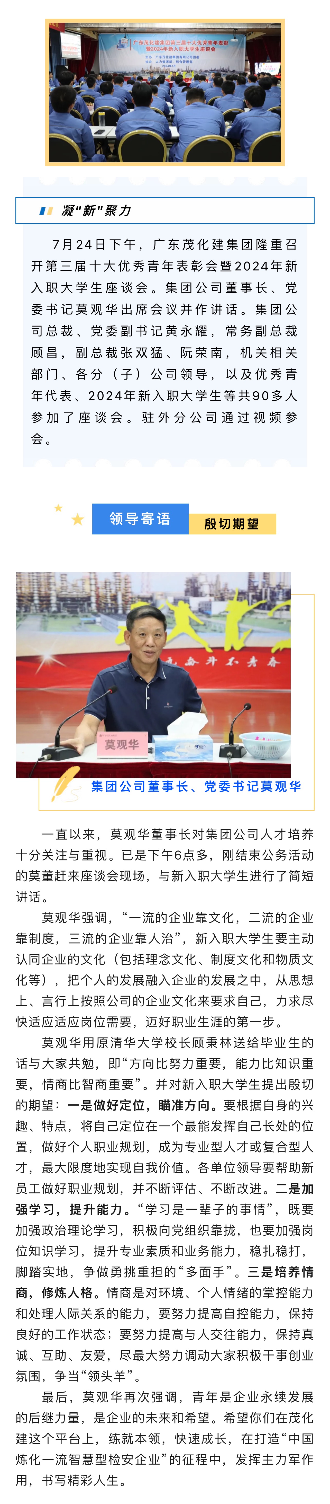 集團公司召(zhào)開第三屆十大(da)優秀青年表彰(zhang)會暨2024年新入職(zhi)🔞大學生座談會(hui)